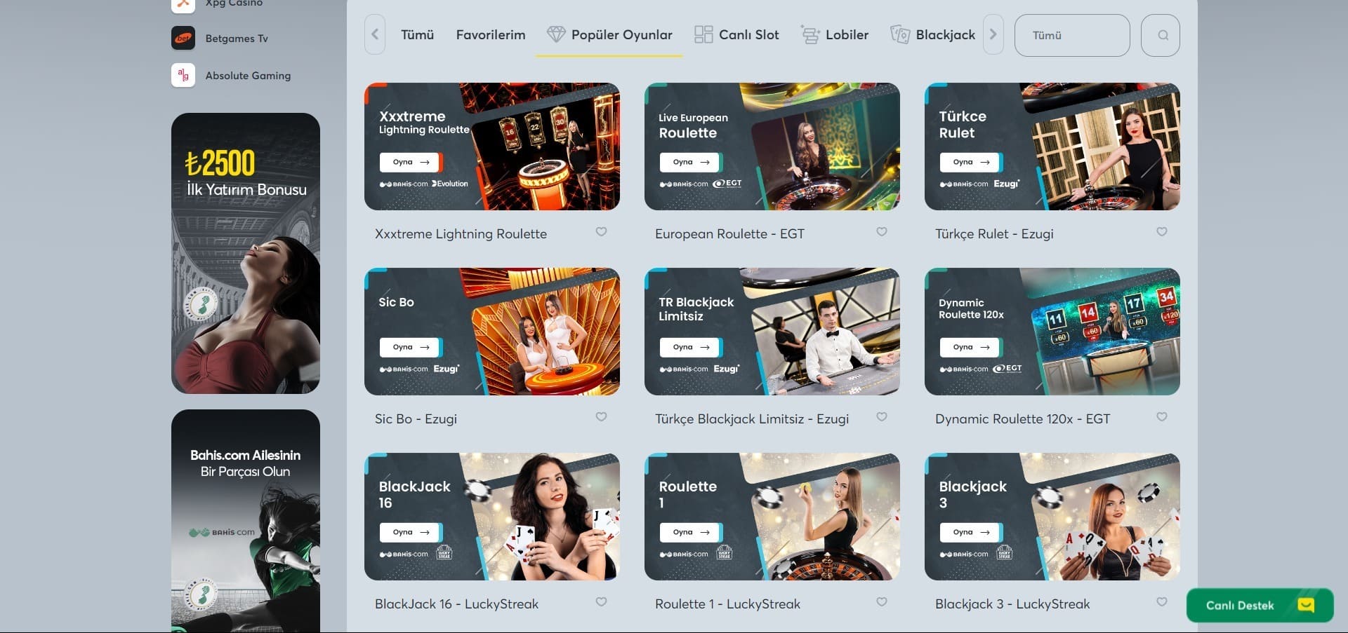 Bahisseverler için tasarlanmış Bahis Casino aynı zamanda casino oyunları da sunuyor. Bahis için ideal bir platform olsa ve iyi oranlar verse de casino oyunları açısından diğer sitelere kıyasla bir tık geride kalıyor.