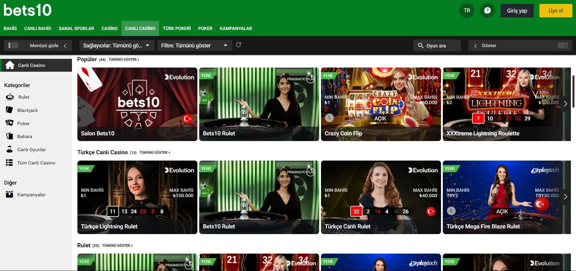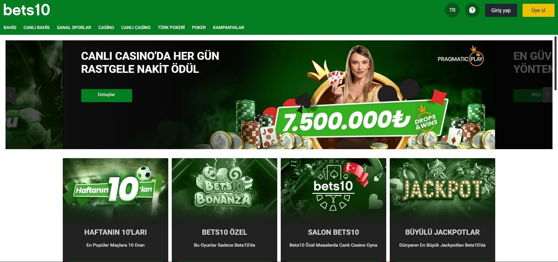 Bets10 Casino isminden de anlaşıldığı gibi bahis üzerine kurlan bir site. Fakat casino oyunları da çokça çeşitliliği ve modern tasarımlarıyla gayet güzel. Ödeme işlemleri çok hızlı yapıldığı için güven kaygısı da olmuyor. Kazandırdığı bonuslarla site üyeleri kendine çekiyor ve güzel imkanlar sunuyor.