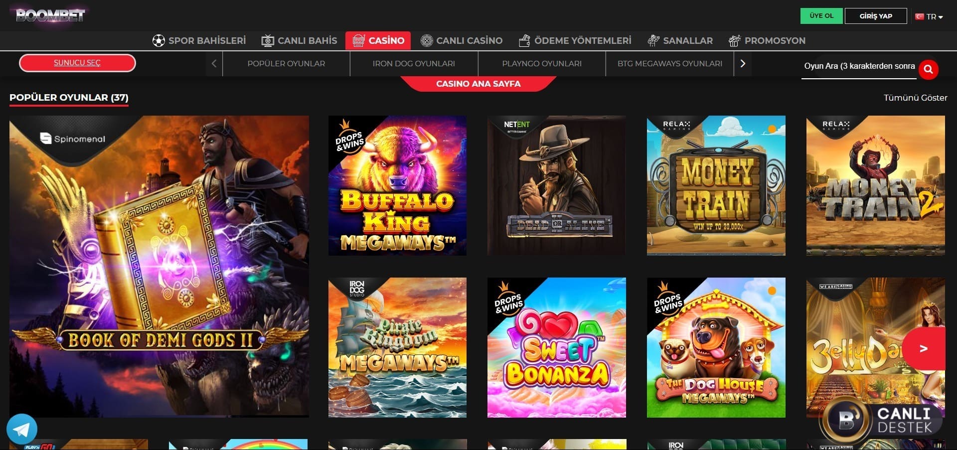 Boombet casino online bahis ve canlı bahis oyunlarıyla ön plana çıkarken aynı zamanda klasik ve modern casino oyunlarıyla da üyelerine çeşitlilik sunmaktadır. Netent, Betsoft gibi meşhur ve başarılı oyun sağlayıcılılarıyla çalışan Boombet Casino, sanal ve canlı casino oyunlarıyla ve yüksek bonus sistemleri sebebiyle çokça tercih edilmektedir.