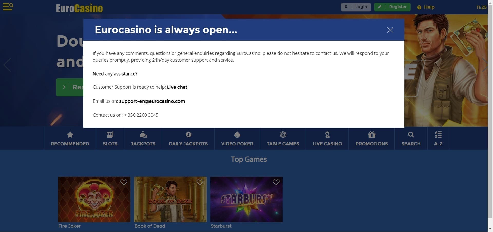 Şık ve detaylara önem veren tasarımıyla özel bir hizmet veren Euro Casino Avrupa çapında ünlü bir platform. Bu sebeple yüzde yüz güvenilir, yavaş olsa dahi bir an bile şüpheye sokmayan bir yapısı mevcut. Türkçe dil desteği en büyük eksiği.