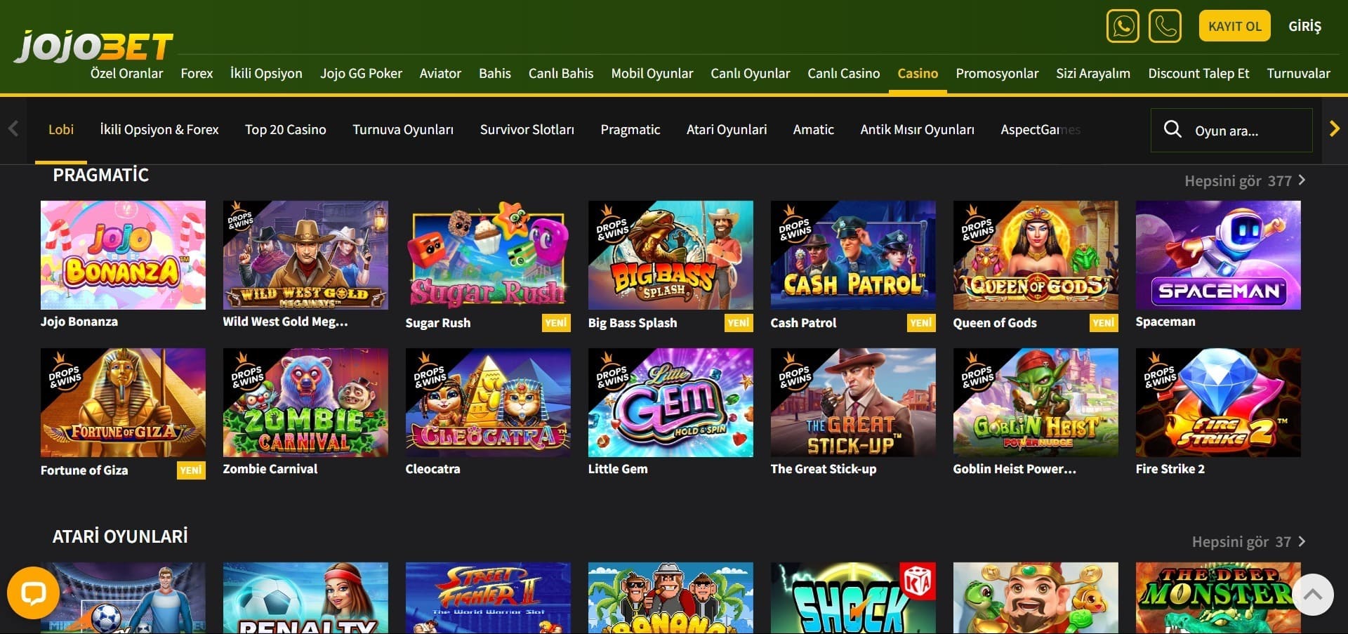 JojobetCasino bünyesinde binlerce farklı slot oyunu, canlı casino oyunu ve bahis şekilleri bulunmaktadır. Bu oyunlar arasında poker, rulet, blackjack, bakara ve yüzlerce farklı slot oyunu vardır.