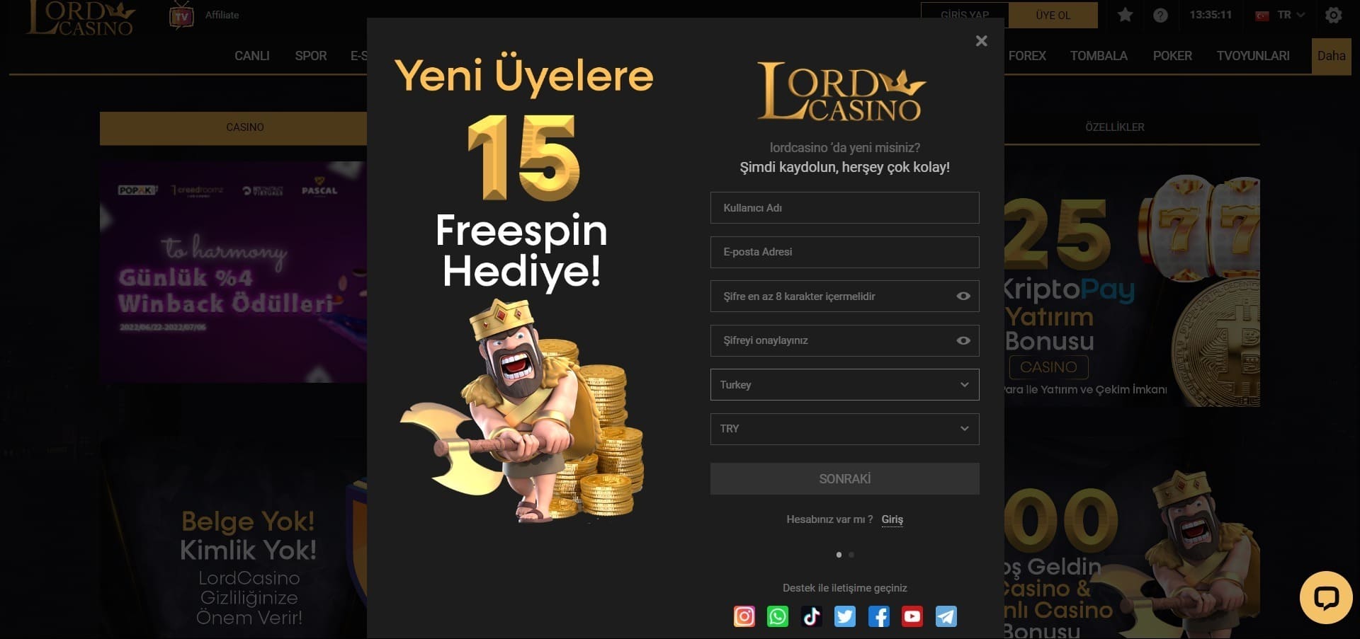 Yeni üye olarak casino Lord giriş yapan kullanıcılar ayrıca hoşgeldin hediyesi olarak Lord casino promosyon kodu ve bonuslarından yararlanmakta, Lord casino promo code ve bonuslarla oyunlardan daha çok kazanma şansını yakalamaktadır.