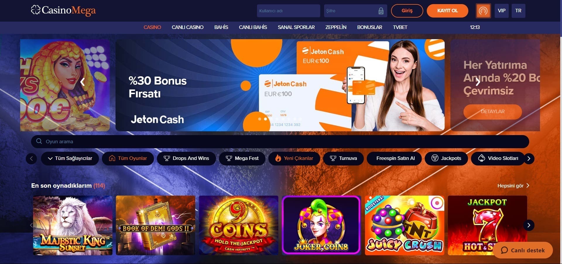 Bunun için casino bölümüne gidip, arama kısmına jackpot yazarak ilgili oyunları bulabilirsiniz. Casino Mega online canlı casino bölümünde, şu an için jackpot oyunları bulunmamaktadır.